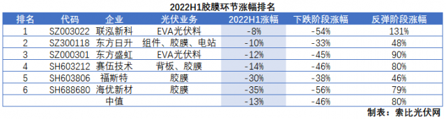 其中,光伏玻璃環(huán)節(jié)主要受產(chǎn)能過剩狀態(tài)下產(chǎn)品售價相較于去年同期大幅下跌,導(dǎo)致增收不增利的影響。數(shù)據(jù)顯示,3.2mm鍍膜玻璃平均售價由2021H1的32.77元/平方米下降至26.76元/平方米,降幅達到18%。膠膜環(huán)節(jié)主要受主要原材料EVA光伏料價格顯著上漲的影響,盈利能力顯著承壓。數(shù)據(jù)顯示,EVA光伏料年初至今漲幅超過50%。