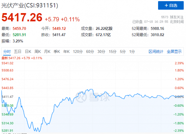 7月18日,光伏板塊迎來分化行情,逆變器、電站、HJT概念股漲幅居前,而硅片、電池、金剛線概念股則全線大跌。受此影響,中證光伏產(chǎn)業(yè)指數(shù)(CSI:931151)報(bào)收5417點(diǎn),微漲0.11%。