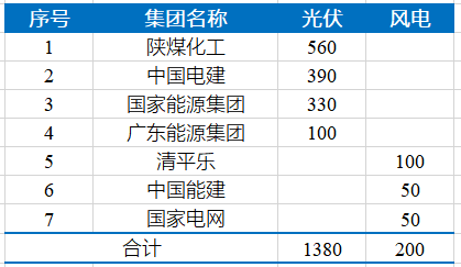 從投資企業(yè)來看,共7家企業(yè)獲得項目指標(biāo),其中:陜煤化工、中國電建、國家能源集團(tuán)三家均獲得300MW以上。具體如下表所示。