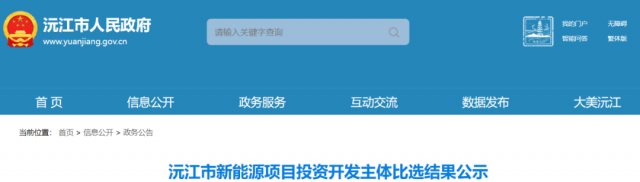 2月17日,湖南省沅江市人民政府下發(fā)《沅江市新能源項目投資開發(fā)主體比選結(jié)果公示》,共下發(fā)了1.58GW,包含1.38GW光伏項目、0.2GW風(fēng)電項目。
