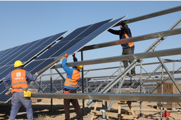 一望無(wú)垠的荒漠戈壁里,光伏藍(lán)海在陽(yáng)光下熠熠生輝,與光熱儲(chǔ)能板塊、風(fēng)電板塊遙相呼應(yīng),“建”證著建設(shè)者在“沙戈荒”上追“光”逐“日”。中建二局將始終聚焦國(guó)家發(fā)展戰(zhàn)略,以實(shí)際行動(dòng)為綠色中國(guó)貢獻(xiàn)更多力量。(麻倩、劉慶安)