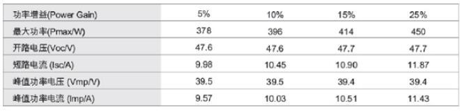 實際上,要理解這些并不難,較之常規(guī)多晶單晶組件,雙面組件的峰值功率電流及短路電流都有很大提升。為證明這一結論,我們不妨截取代表性組件企業(yè)主流功率段單晶組件(60片)的性能參數(shù)來看: