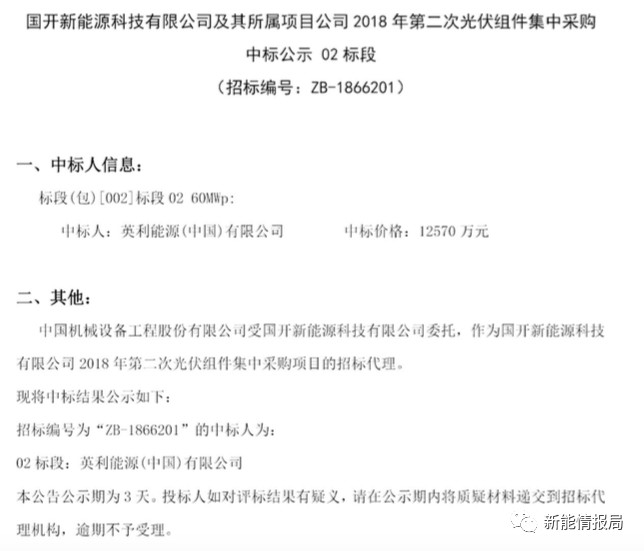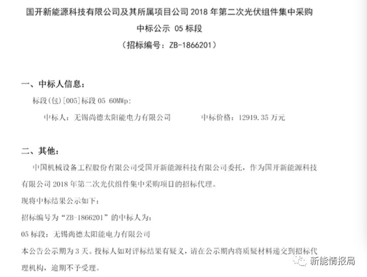 7月28日,國開新能源科技有限公司及其所屬項(xiàng)目公司發(fā)布2018年第二次光伏組件集中采購中標(biāo)公示。