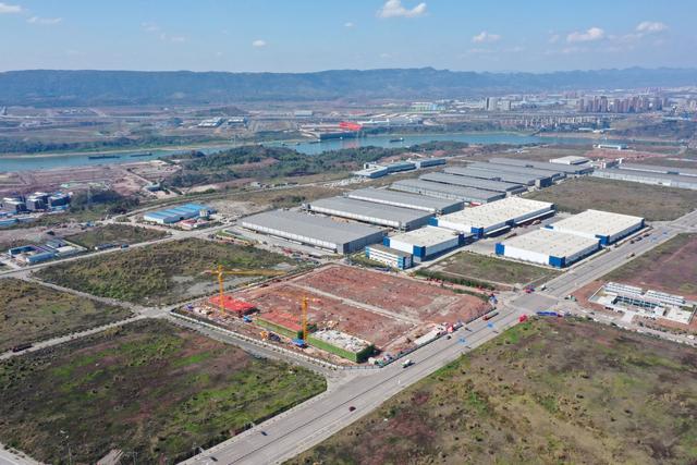 圖為重慶東港汽車電子產(chǎn)業(yè)園項(xiàng)目建設(shè)施工現(xiàn)場(chǎng)(無人機(jī)照片)。新華社記者 唐奕 攝