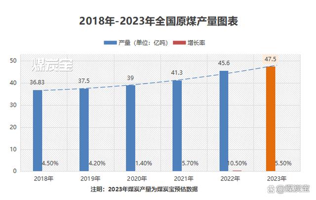 ▲2018年-2023年全國(guó)原煤產(chǎn)量對(duì)比圖