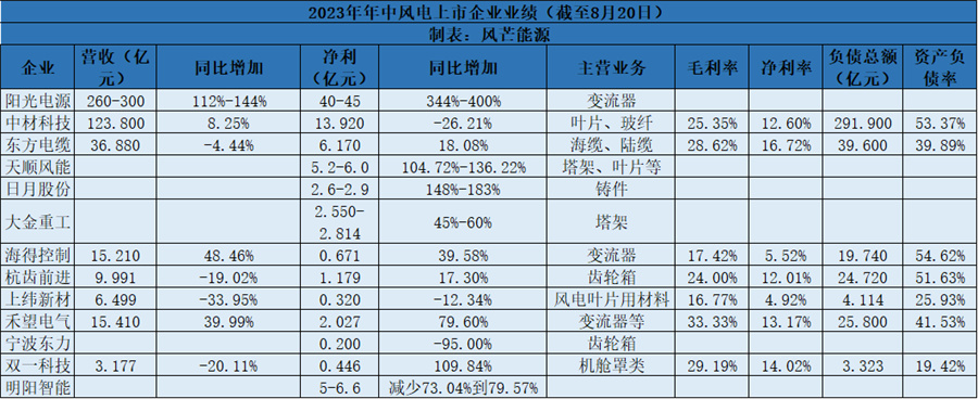 近日,明陽智能、中材科技、天順風能等13家風電企業(yè)發(fā)布業(yè)績中報。從已公布業(yè)績來看,風電產業(yè)鏈盈利繼續(xù)冷熱不均。