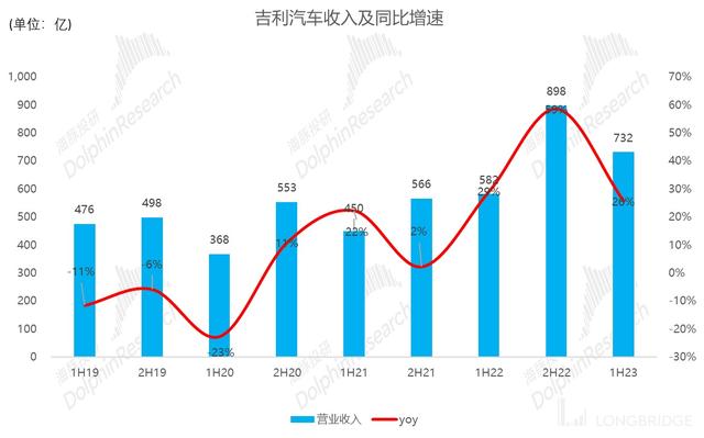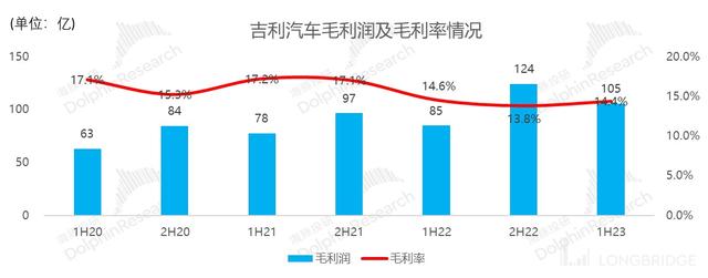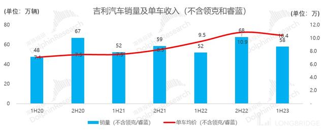 根據(jù)海豚君計算,公司 2023 年上半年實現(xiàn)單車收入(不含領(lǐng)克和睿藍)10.4 萬元,同比增 10%,超出市場預(yù)期 9.2 萬元。