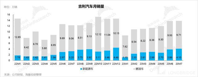 2、但上半年新能源轉(zhuǎn)型速度偏慢:上半年新能源車銷量環(huán)比下滑 28%,僅完成全年銷量 24%,完成進度較慢,除了銀河混動上半年還沒有真正上量之外,主要是純電與睿藍與極氪品牌銷量放緩有關(guān)。
