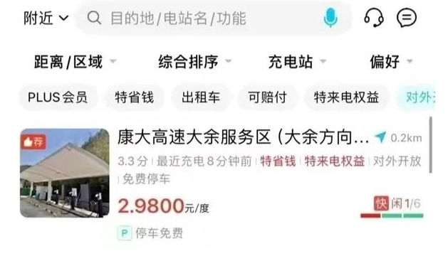 2月1日,瀟湘晨報記者登錄特來電App搜索大余服務(wù)區(qū)充電樁時看到,標(biāo)價是1.8元/度,并不是網(wǎng)傳截圖的2.98元。