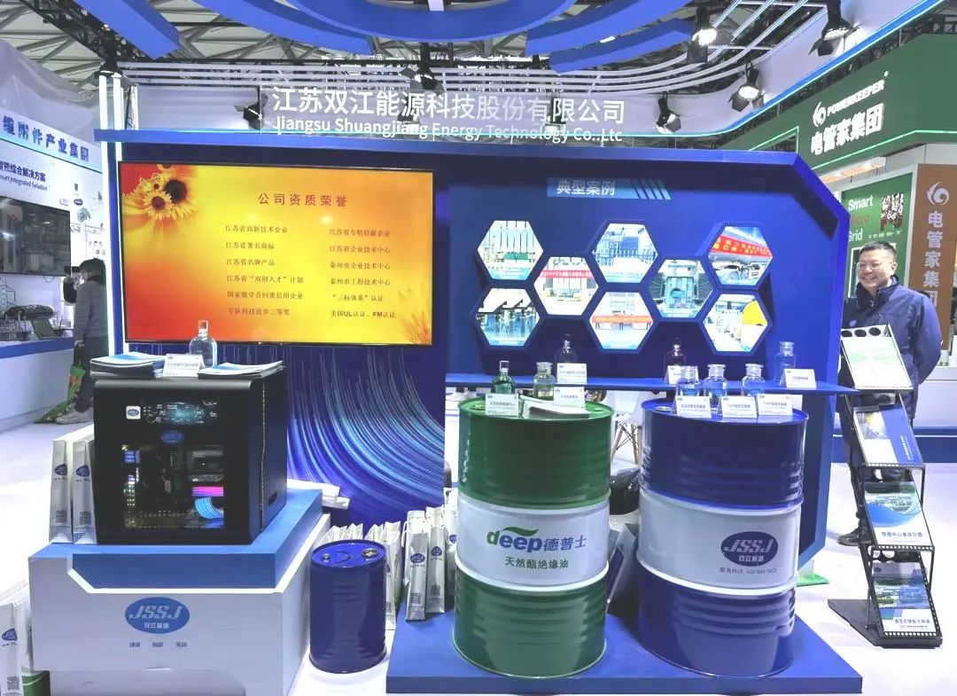 長纜科技集團股份有限公司重點展示了電力系統(tǒng)綜合解決方案、新能源電力綜合解決方案、智能綜合解決方案、電力絕緣材料解決方案、電纜施工解決方案等系統(tǒng)解決方案。長纜科技控股子公司江蘇雙江能源科技股份有限公司攜天然酯絕緣油、變壓器油、冷卻液等高品質(zhì)特種工業(yè)潤滑油亮相展會。