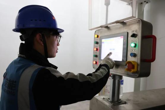 12GW高性能鋰離子儲能電池項(xiàng)目現(xiàn)場,工作人員正在調(diào)試設(shè)備。趙菠攝