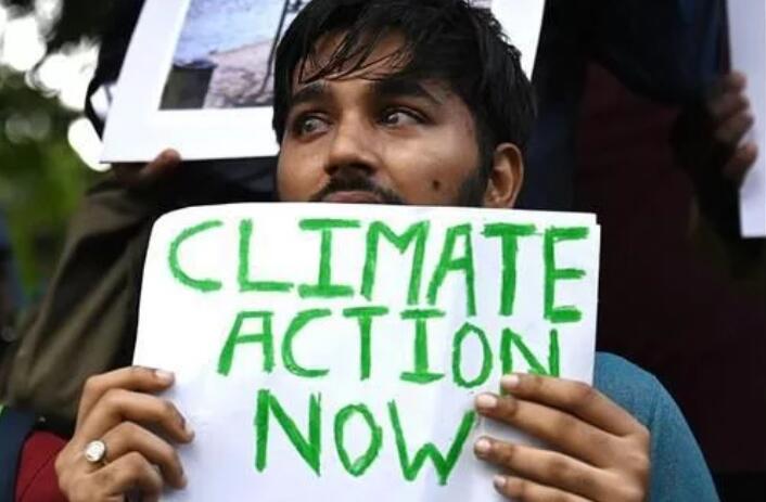 孟買一名男子呼吁立即采取氣候行動(dòng)。圖片來源:《自然》網(wǎng)站
