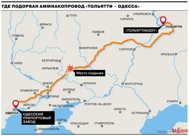 據(jù)央視新聞,俄羅斯國(guó)防部發(fā)言人科納申科夫7日稱,烏克蘭破壞分子5日晚炸毀了位于哈爾科夫州的陶里亞蒂-敖德薩液氨輸送管道。