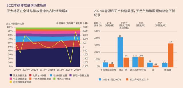 年鑒顯示,2022年,全球一次能源需求增長放緩,整體增速低于2021年;除歐洲與獨(dú)聯(lián)體外,所有地區(qū)的一次能源消費(fèi)量均有增長。其中,石油、煤炭、天然氣三種資源的價(jià)格持續(xù)走高。數(shù)據(jù)顯示,全球石油消費(fèi)量、煤炭需求和產(chǎn)量均有所增長;而天然氣需求下降3%,管道天然氣凈貿(mào)易的總量也同步下滑。同時(shí),可再生能源發(fā)電占比的提升也已成為重要趨勢(shì)——2022年,可再生電力(不包括水電)增長14%,滿足了84%的電力需求凈增量。
