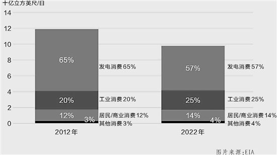 日本各部門天然氣消費(fèi)量(2012~2022年)