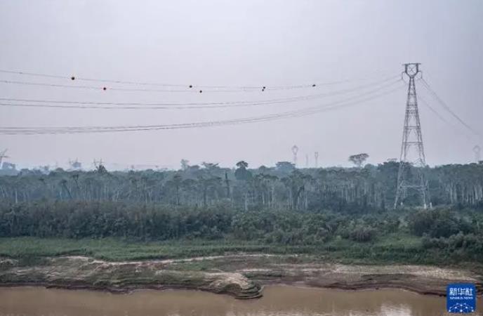 9月13日,在巴西朗多尼亞州,EDP輸變電項目線路穿越熱帶雨林和馬代拉河。新華社記者 王天聰 攝