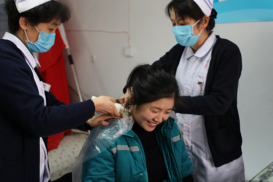 “沒事,頭發(fā)剪掉還可以再長出來,我們現(xiàn)在最要緊的工作就是與疫情作斗爭,頭發(fā)剪短工作起來就更方便?!?/p>