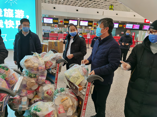 行政事務(wù)部專門為黃河三門峽醫(yī)院馳援武漢的醫(yī)護(hù)人員準(zhǔn)備了食品和生活用品,并送到新鄭機(jī)場,交到醫(yī)護(hù)人員手中。