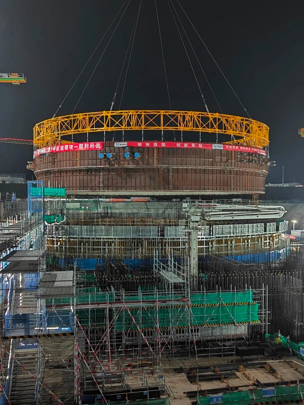 本網(wǎng)訊 2022年5月15日4時18分,海南昌江核電廠4號機組核島反應堆廠房鋼襯里模塊一吊裝就位,此次吊裝成功將為4號機組反應堆廠房內部結構施工關鍵路徑順利推進打下堅實基礎。