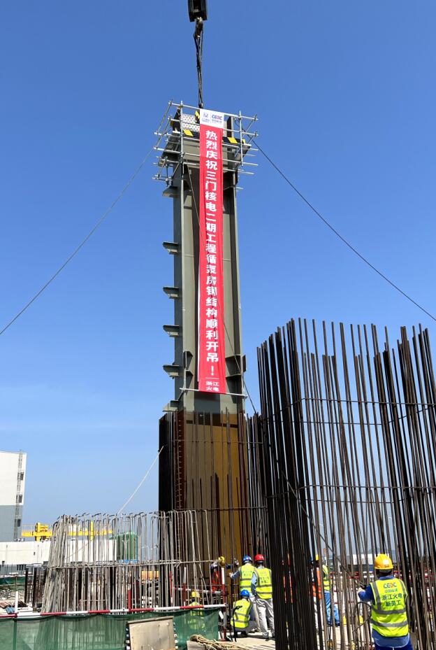 本網(wǎng)訊 7月27日上午,中國能建設計參建的三門核電二期工程循泵房鋼結構正式開吊。