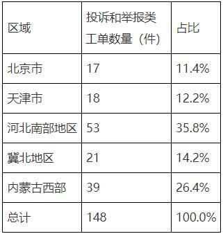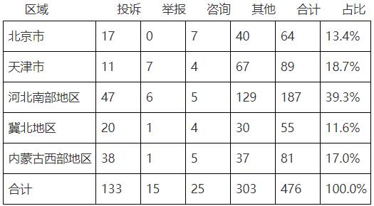 9月份投訴和舉報工單中,河北南部地區(qū)數(shù)量最多,占35.8%。投訴和舉報類工單按區(qū)域分布情況具體見表7。