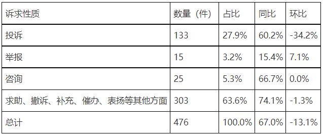 表1 2022年9月份工單按訴求性質(zhì)分類情況