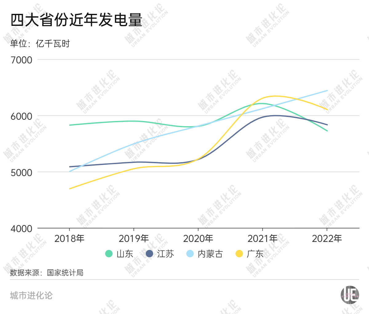 2022年,山東發(fā)電量為5722.6億千瓦時、同比下降3.7%,不僅增速居全國倒數(shù),發(fā)電量與排名第一的內(nèi)蒙古差距也擴大到700多億千瓦時。