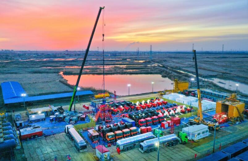 勝利油田牛頁1-6井壓裂現(xiàn)場(chǎng)。