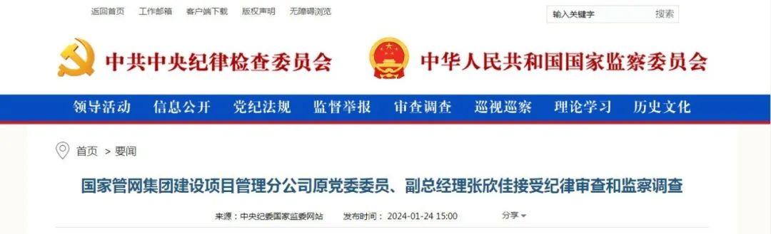 中央紀委國家監(jiān)委網(wǎng)站1月24日,據(jù)國家管網(wǎng)集團紀檢監(jiān)察組、遼寧省紀委監(jiān)委消息:國家管網(wǎng)集團建設項目管理分公司原黨委委員、副總經(jīng)理張欣佳涉嫌嚴重違紀違法,目前正接受國家管網(wǎng)集團紀檢監(jiān)察組和遼寧省錦州市監(jiān)委紀律審查和監(jiān)察調查。