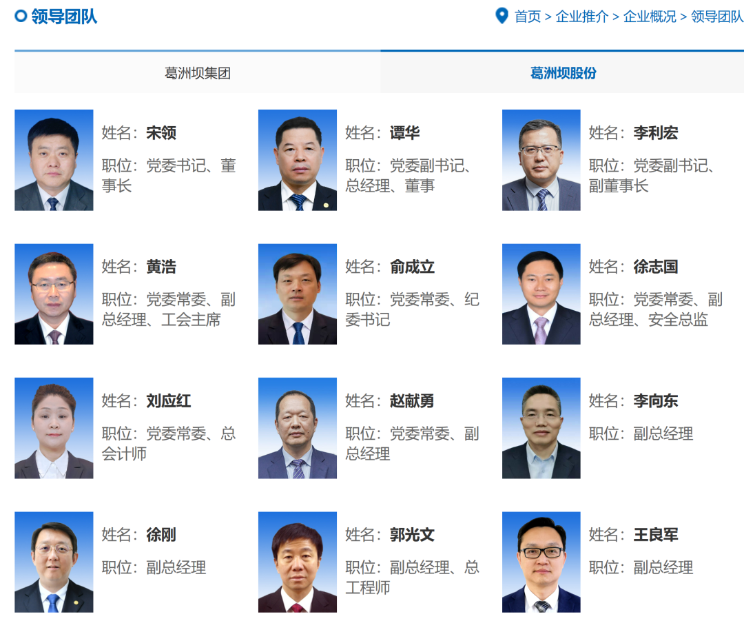 葛洲壩股份領(lǐng)導(dǎo)如下: