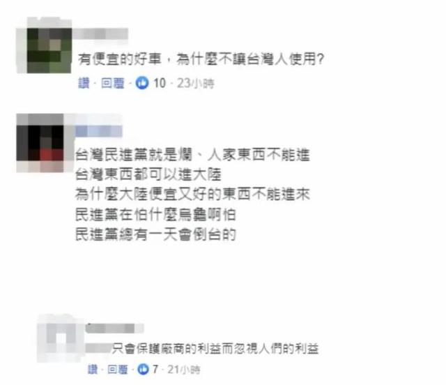 根據(jù)臺灣地區(qū)現(xiàn)行政策,大陸汽車整車、底盤及部分零組件仍被列為“禁入項”。而島內(nèi)民眾對民進(jìn)黨當(dāng)局的做法并不買賬,相關(guān)報道也引發(fā)網(wǎng)民“吐槽”——“有便宜的好車,為什么不讓臺灣人使用”“民進(jìn)黨能讓它進(jìn)來嗎?那豈不是影響了歐美進(jìn)口車的行情”。更有不少批評聲音指出,島內(nèi)汽車市場在貿(mào)易保護(hù)主義作用下簡直是“一潭死水”,創(chuàng)新能力越來越弱。