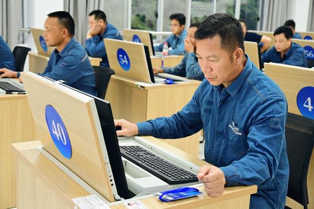 在理論考試現(xiàn)場(chǎng),選手正在認(rèn)真答題。韋靜攝