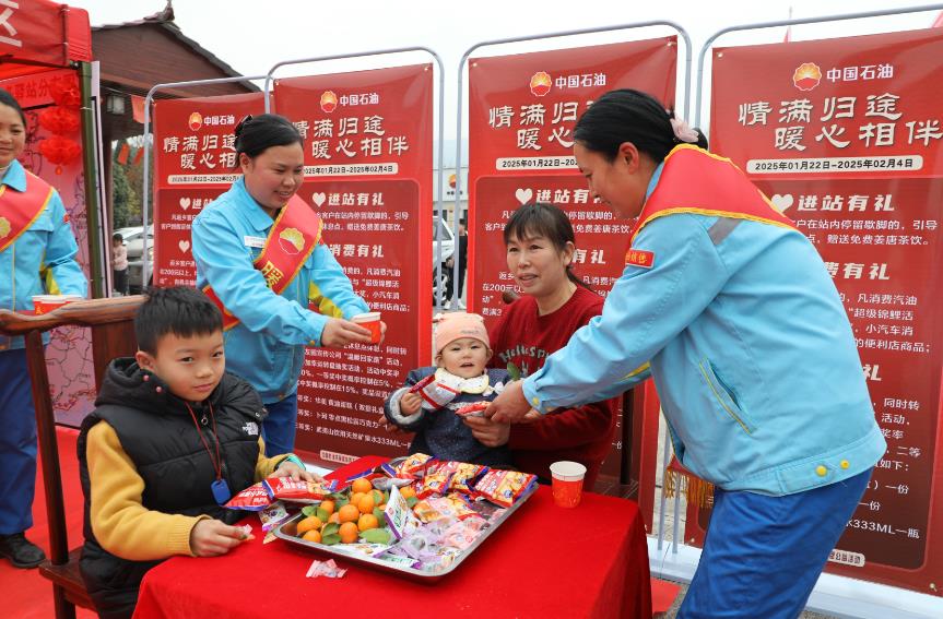 寒冬暖心,“愛”在路上。春運期間,廣西銷售成立公益活動專班,安排桂林、貴港等地的29座加油站加入今年的春運行動,協(xié)同當?shù)卣?、工會、交管等部門聯(lián)動服務,為進站返鄉(xiāng)客戶提供免費姜湯熱茶、煮湯圓、道路指引、應急藥箱、進站休息等多項暖心服務,溫暖八桂大地返鄉(xiāng)人。