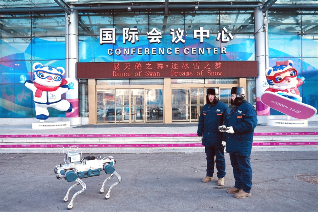 ▲國網(wǎng)黑龍江電力員工操作巡檢機(jī)器狗對電纜通道進(jìn)行特巡