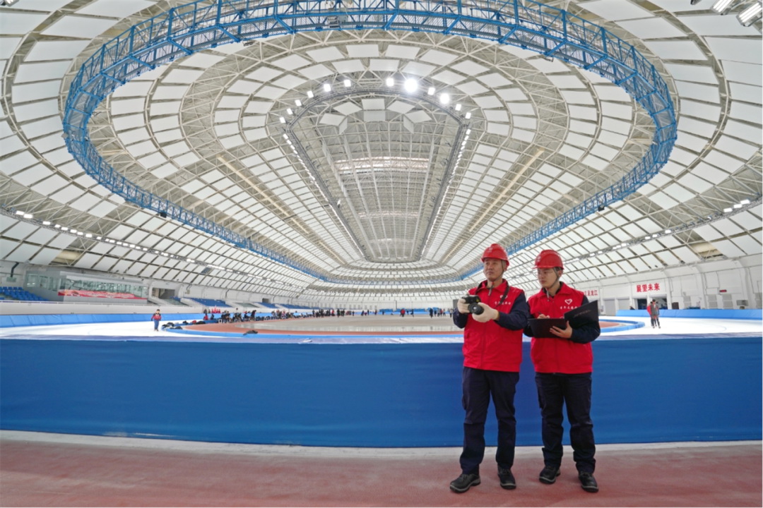 ▲國網(wǎng)黑龍江電力員工對亞冬會速滑館進(jìn)行特巡