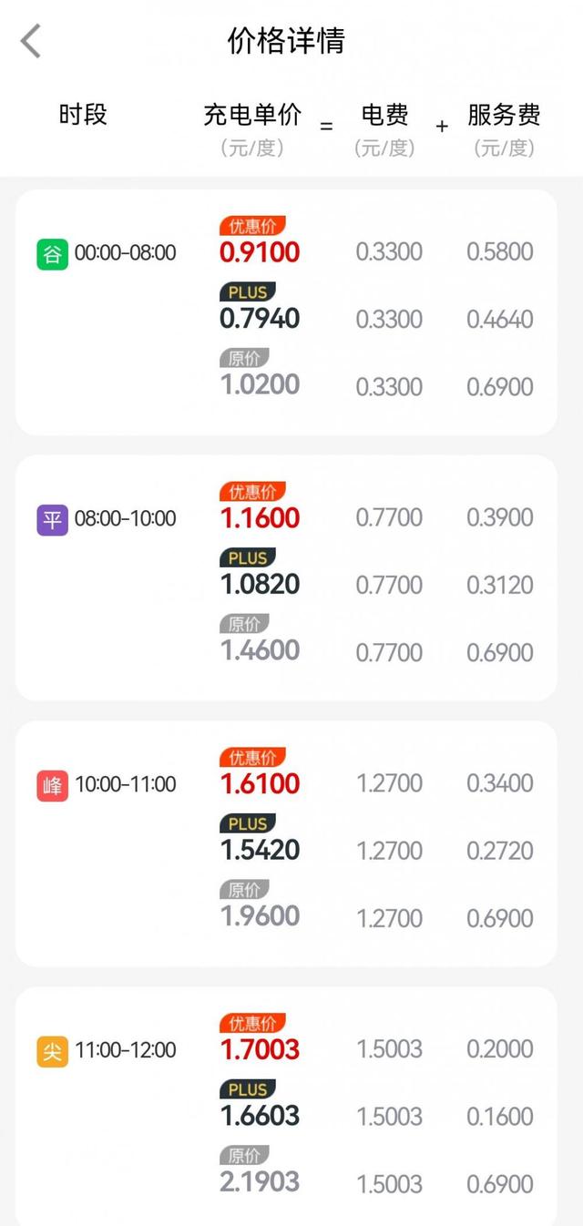 上海的新規(guī)則是,今年7月至9月實行尖峰平谷4個時段電價,調(diào)整后峰段電價發(fā)生較大變化,12:00-14:00尖峰電價為每千瓦時1.6198元,加上服務(wù)費后充電總費用達(dá)每千瓦時2元左右。這是公共樁充電費用大幅上漲的核心原因。