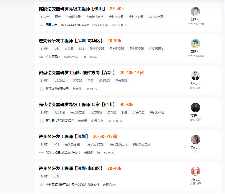 獵聘網(wǎng)招聘需求顯示,3年~5年經(jīng)驗(yàn)的逆變器工程師,月薪區(qū)間普遍在2萬~4萬元