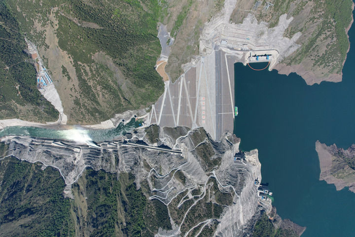這是國家能源集團(tuán)大渡河大崗山水電站大壩全貌(資料照片)。新華社發(fā)(李麗 攝)