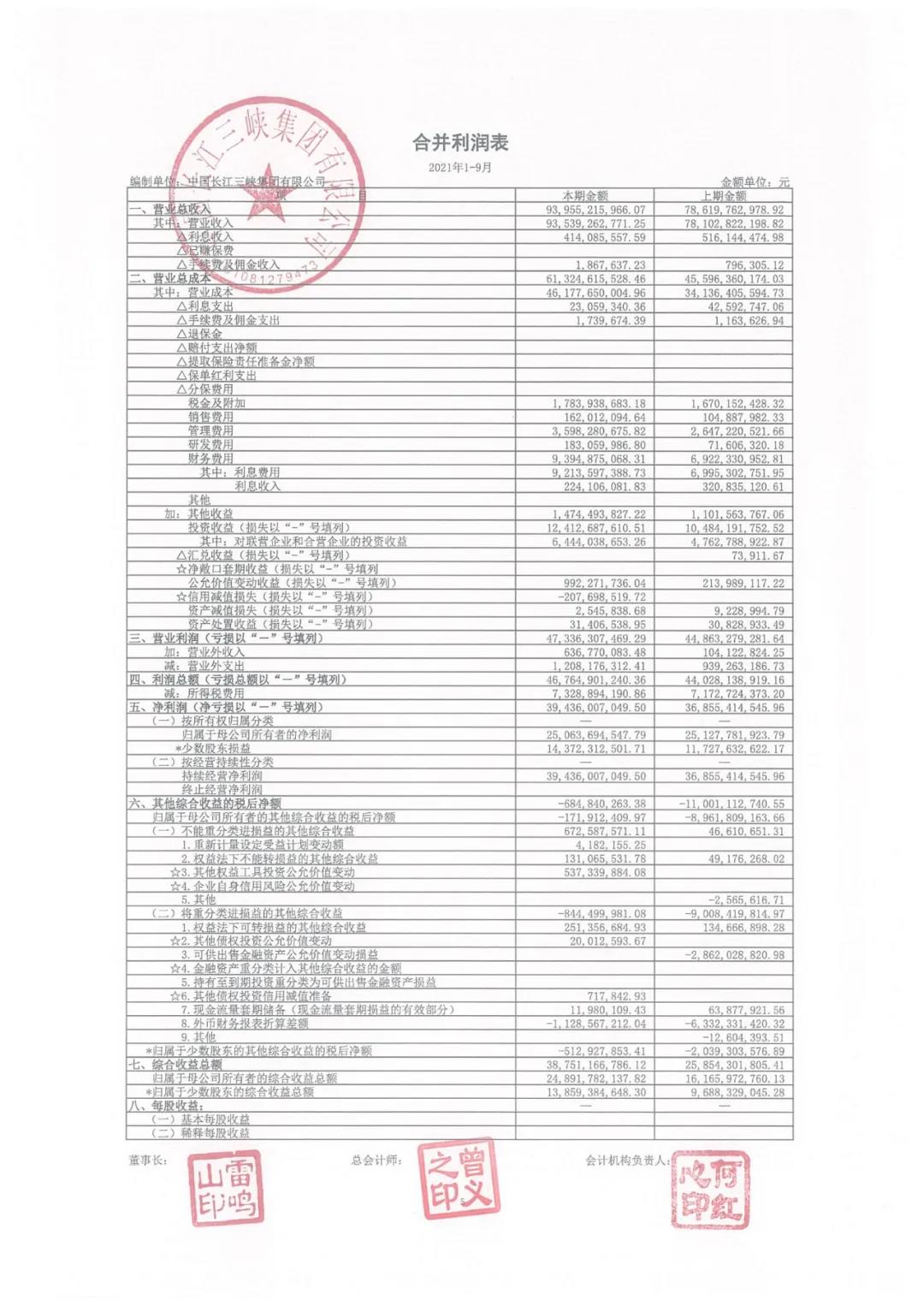 前三季度,三峽集團(tuán)實(shí)現(xiàn)營(yíng)業(yè)總收入939.6億元,上年同期786.2億元,同比增長(zhǎng)約19.5%;