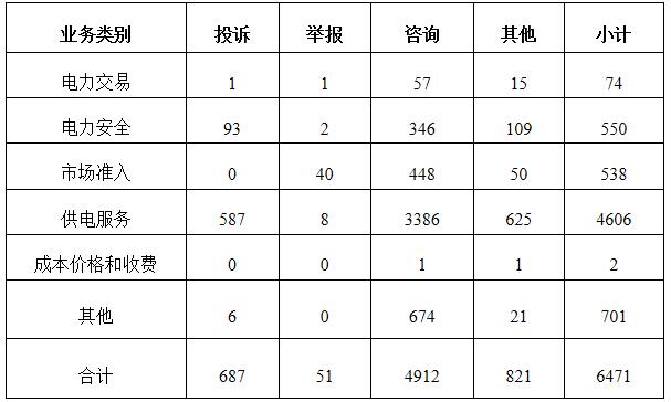 電力行業(yè)投訴舉報(bào)數(shù)量為738件,占全部投訴舉報(bào)數(shù)量的94.25%。反映的主要問題有:一是部分地區(qū)受雷雨強(qiáng)風(fēng)等惡劣天氣影響導(dǎo)致故障停電,停電后修復(fù)周期較長(zhǎng);二是部分地區(qū)供電設(shè)施老舊,網(wǎng)架比較薄弱,供電半徑長(zhǎng)、線徑小,導(dǎo)致頻繁停電和低電壓;三是個(gè)別供電企業(yè)工作人員服務(wù)意識(shí)不強(qiáng),影響了群眾正常用電或者辦理涉電業(yè)務(wù);四是部分地區(qū)電力企業(yè)辦理承裝(修、試)電力設(shè)施許可證時(shí),使用非本企業(yè)員工證件,涉嫌提供虛假申請(qǐng)材料。