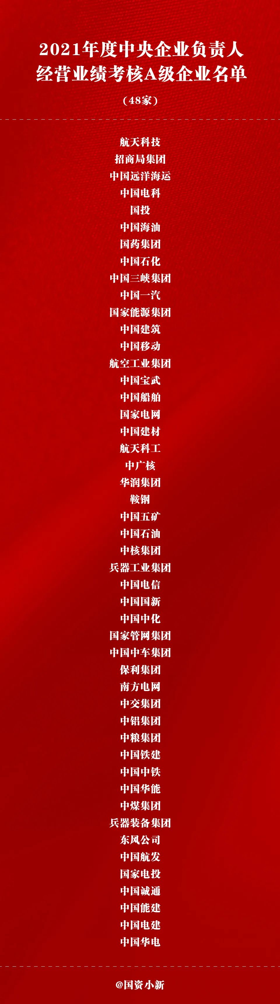 2021年度考核結(jié)果為A級的企業(yè)48家,2019-2021年任期考核結(jié)果為A級企業(yè)46家。