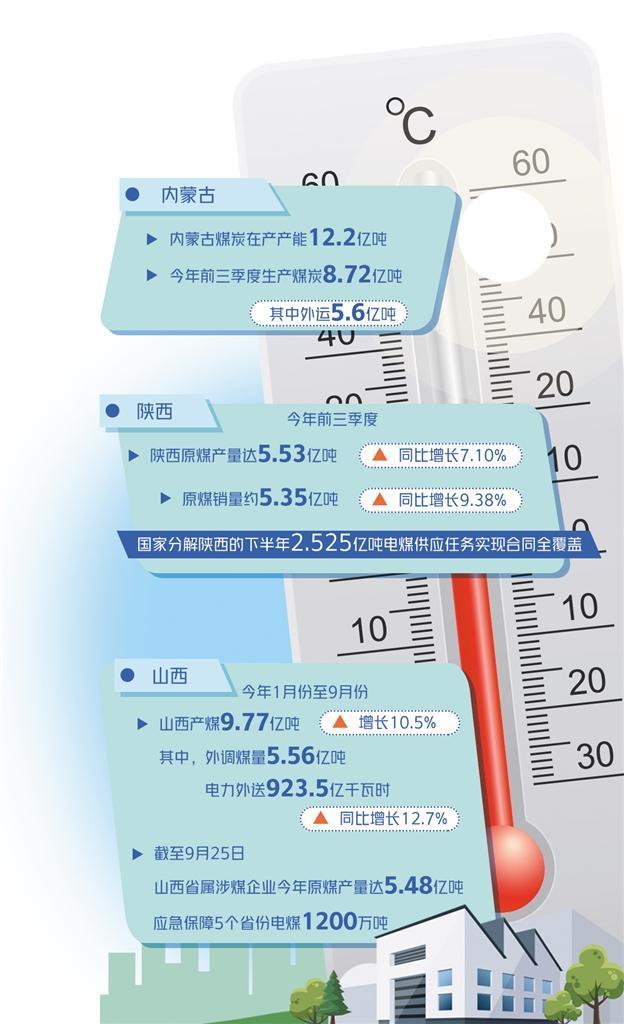 數(shù)據(jù)顯示,今年1月份至9月份,山西省產(chǎn)煤9.77億噸,增長10.5%。其中,外調(diào)煤量5.56億噸;電力外送923.5億千瓦時(shí),同比增長12.7%。山西省委常委、常務(wù)副省長張吉福表示,當(dāng)前,山西煤炭產(chǎn)能利用充分,產(chǎn)量儲備充足,電力供應(yīng)充裕。