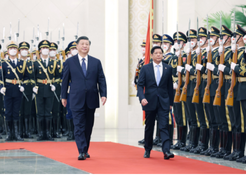 習(xí)近平強(qiáng)調(diào),中菲同為亞洲發(fā)展中國家,我們的發(fā)展根植于睦鄰友好的周邊環(huán)境,根植于合作共贏的亞洲大家庭。中方愿同菲律賓及其他東盟國家聚焦合作與發(fā)展,維護(hù)好東盟在區(qū)域合作中的中心地位,推進(jìn)“五大家園”建設(shè),推動(dòng)本地區(qū)擺脫冷戰(zhàn)陰影,免于陣營對(duì)抗,持續(xù)成為發(fā)展繁榮高地。中方贊賞菲方支持全球發(fā)展倡議和全球安全倡議,愿同菲方一道,加大相互支持,維護(hù)兩國和發(fā)展中國家共同利益,弘揚(yáng)全人類共同價(jià)值,推動(dòng)構(gòu)建人類命運(yùn)共同體,為完善地區(qū)和全球治理作出積極貢獻(xiàn)。