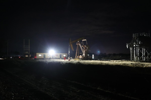 夜幕降臨,科爾沁的溫度急劇下降,蔡會(huì)強(qiáng)簡(jiǎn)單吃過(guò)晚飯后,又開(kāi)始夜巡,井場(chǎng)的周邊沒(méi)有一絲光亮,夜巡需要更加細(xì)致。