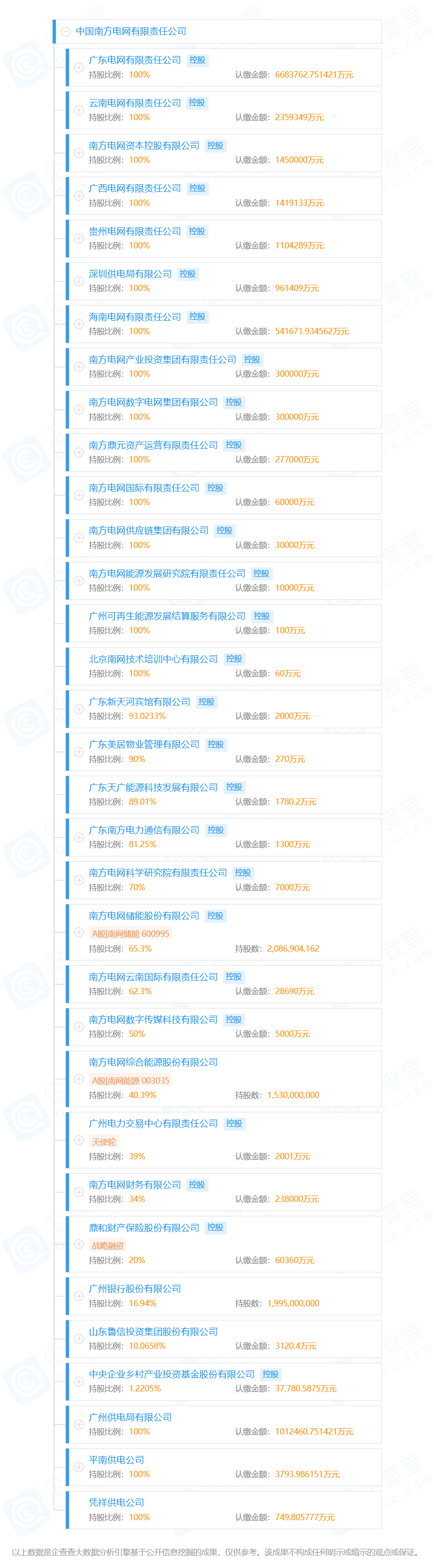 南方電網(wǎng)對外投資控股33家企業(yè),如下圖所示。