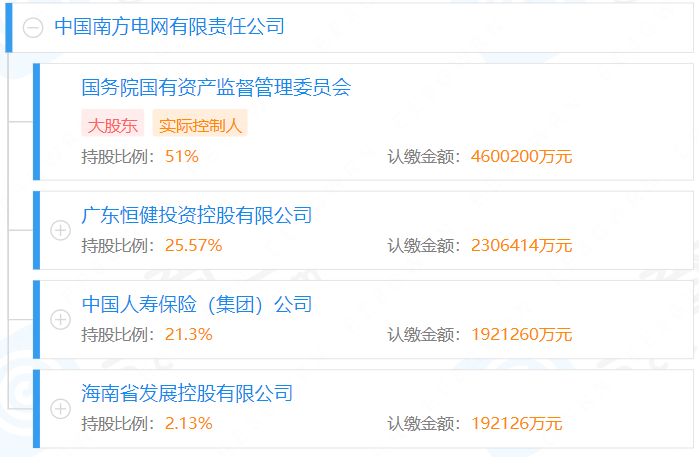 據(jù)媒體2021年12月報道,完善南方電網(wǎng)股權(quán)結(jié)構(gòu)推動高質(zhì)量發(fā)展專題會議在深圳召開,南方電網(wǎng)股權(quán)結(jié)構(gòu)調(diào)整為國務(wù)院國資委持股51%、廣東省人民政府持股25.57%、中國人壽保險(集團)公司持股21.3%、海南省人民政府持股2.13%。