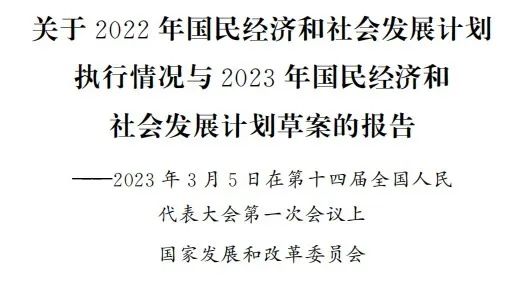 受國務(wù)院委托,現(xiàn)將2022年國民經(jīng)濟(jì)和社會發(fā)展計(jì)劃執(zhí)行 情況與2023年國民經(jīng)濟(jì)和社會發(fā)展計(jì)劃草案提請十四屆全國人 大一次會議審查,并請全國政協(xié)各位委員提出意見。