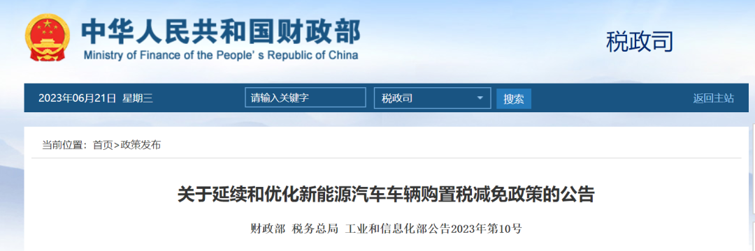 6月20日,財(cái)政部、稅務(wù)總局、工信部發(fā)布《關(guān)于延續(xù)和優(yōu)化新能源汽車(chē)車(chē)輛購(gòu)置稅減免政策的公告》(以下簡(jiǎn)稱(chēng)《公告》)。
