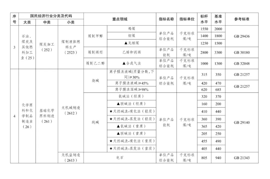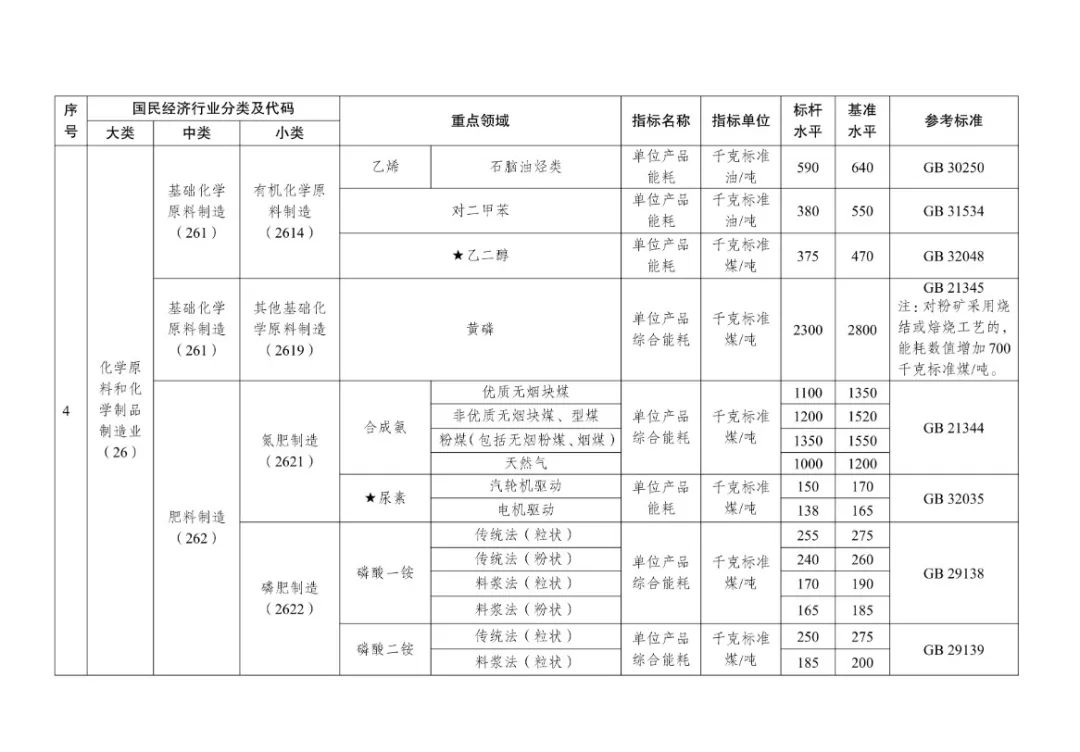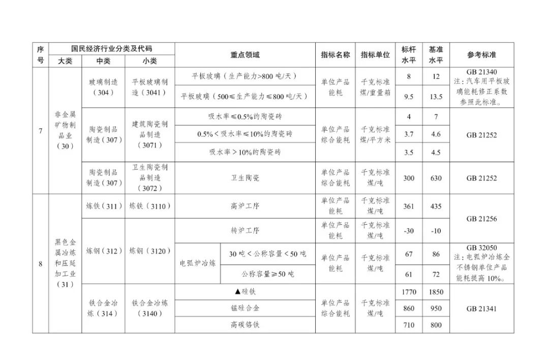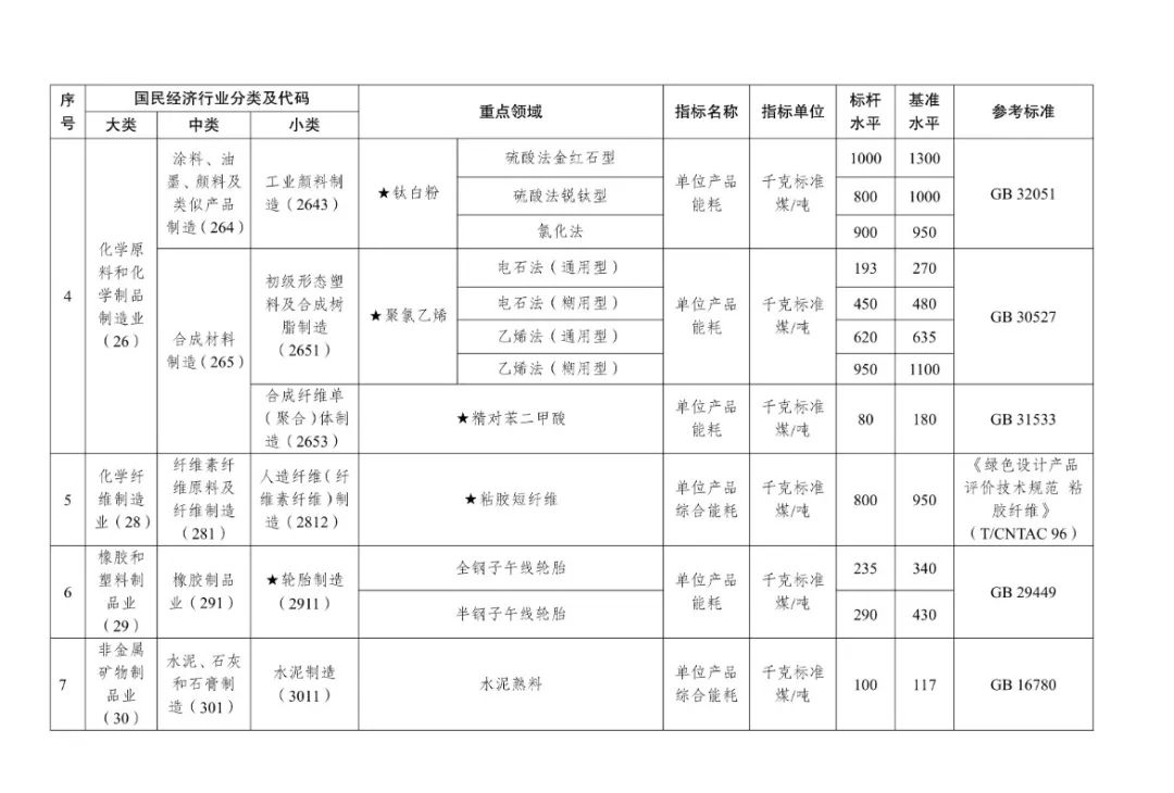 結(jié)合工業(yè)重點領(lǐng)域產(chǎn)品能耗、規(guī)模體量、技術(shù)現(xiàn)狀和改造潛力等,進一步拓展能效約束領(lǐng)域。在此前明確煉油、煤制焦炭、煤制甲醇、煤制烯烴、煤制乙二醇、燒堿、純堿、電石、乙烯、對二甲苯、黃磷、合成氨、磷酸一銨、磷酸二銨、水泥熟料、平板玻璃、建筑陶瓷、衛(wèi)生陶瓷、煉鐵、煉鋼、鐵合金冶煉、銅冶煉、鉛冶煉、鋅冶煉、電解鋁等25個重點領(lǐng)域能效標(biāo)桿水平和基準(zhǔn)水平的基礎(chǔ)上,增加乙二醇,尿素,鈦白粉,聚氯乙烯,精對苯二甲酸,子午線輪胎,工業(yè)硅,衛(wèi)生紙原紙、紙巾原紙,棉、化纖及混紡機織物,針織物、紗線,粘膠短纖維等11個領(lǐng)域,進一步擴大工業(yè)重點領(lǐng)域節(jié)能降碳改造升級范圍。