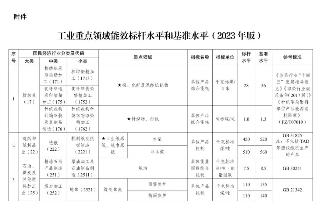 附件:工業(yè)重點領(lǐng)域能效標(biāo)桿水平和基準(zhǔn)水平(2023年版)